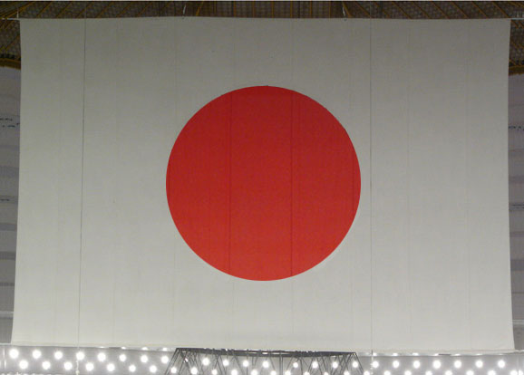 Japanese Flag & AnthemOn August 9, 1999 the Diet adopted a new law which made the Hinomaru the official national flag and "Kimigayo" the national anthem. Hinomaru (The Japanese Flag)The Hinomaru, also sometimes referred to as the Nisshoki (Sun Flag), became the official national flag in 1999. The flag is white with a large red circle (showing the raising sun).The flag was used on military banners at least since the 16th century. Even if Hinomaru was officially adopted as national flag in 1999 the flag has been used since 1870 when the Meiji government officially adopted it.