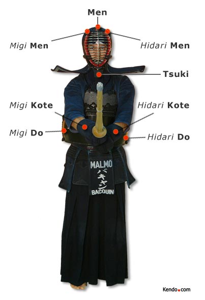 Point strikes only to the following 8 parts: MEN DO KOTE |