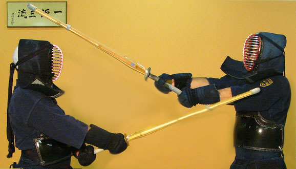 As soon as a kendoka is ready to begin practice in Bogu (armour), a session may include any or all of the following types of practice. Kiri-kaeshi: Warming up practice with shinai. Striking the left and right men succesively, target points in succession, practice centering, distance and correct technique, as well as developing spirit and stamina. Text source: Wikipedia with added/changed information by GlobalKendo.com